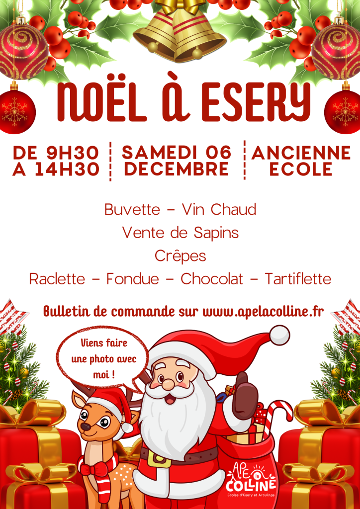 L’APE « La colline » est heureuse d’organiser pour la 4ème année l’évènement « Noël à Esery«  le Samedi 06 Décembre de 9h30 à 14h30.